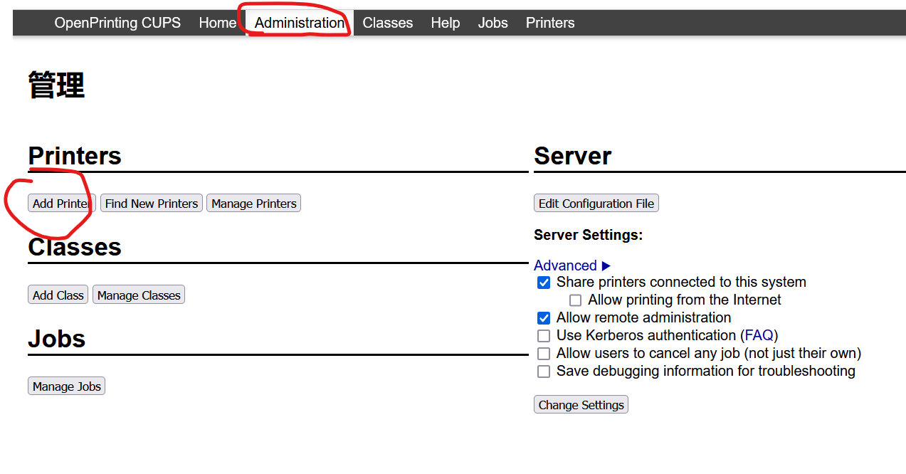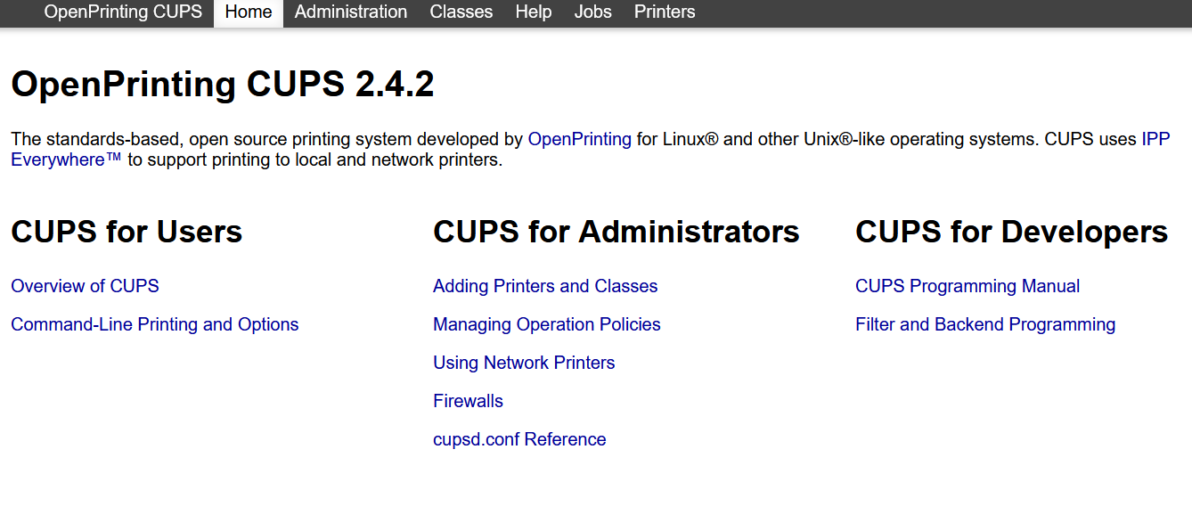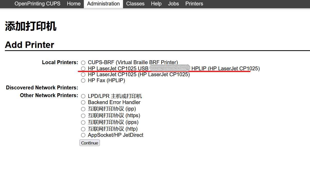 浏览器输入https://{树莓派IP}:631。例如https://192.168.1.10:631/