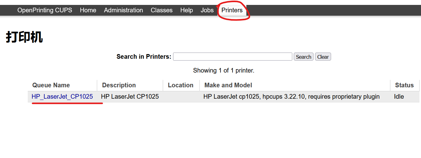 最终添加打印机完毕,在Printers可以查看到刚才添加的打印机