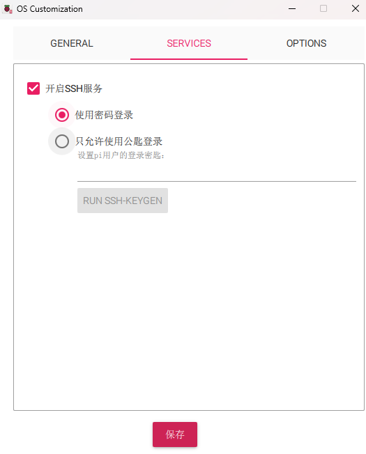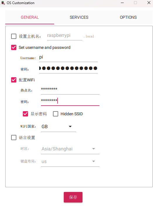 3.点击保存,并开始制作系统SD卡。完毕后,将sd卡放到树莓派上,首次启动需要多等待一会儿,当树莓派连接到wifi后就可以通过ssh访问了。
